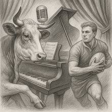 Puis, sans transition, un match de rugby en direct : muscles, souffle, terrain boueux, le ballon qui hésite entre la gravité et l’insolence.